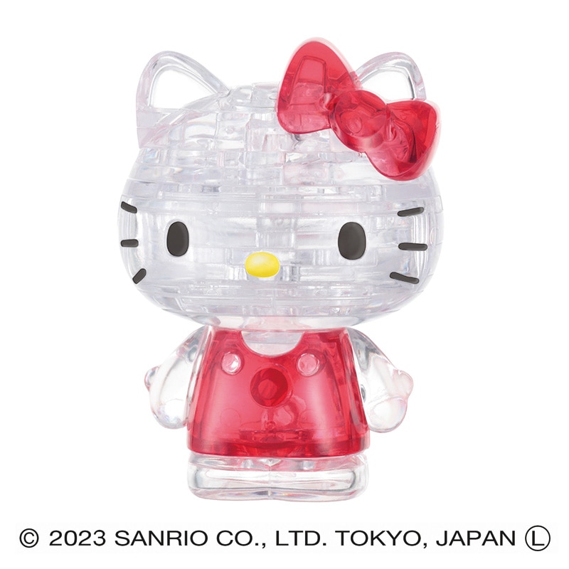 クリスタルギャラリーは、透明の3Dパズルピースを組み上げて透明キャラクターフィギュアを作る、立体ジグソーパズルです。お部屋のインテリアにおすすめです。完成するとかわいいハローキティのできあがり。リボン、洋服は赤。目、鼻、ヒゲは彩色を施して、愛らしい表情を再現しています。手や頭の向きを変えることができるので、好きなポーズで飾ることができます。36ピース。