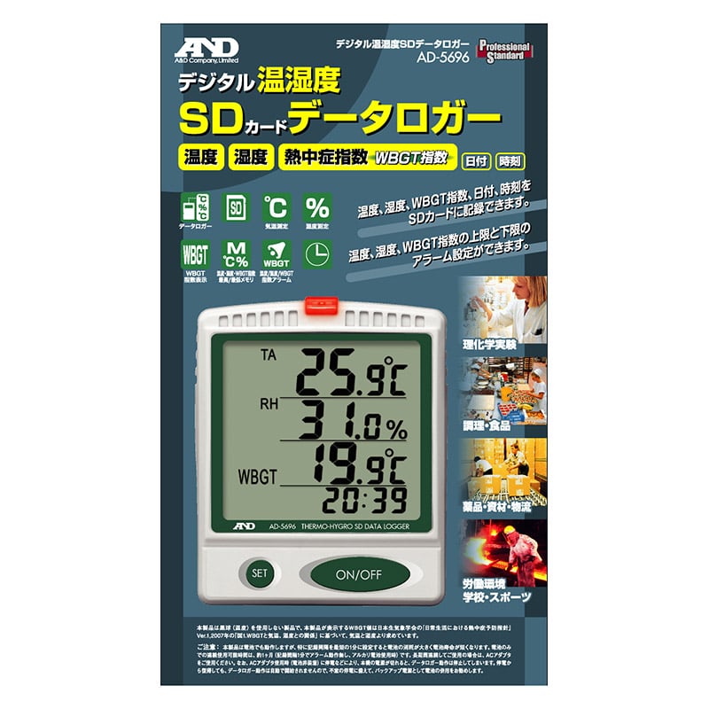 エー・アンド・デイ 温湿度SDレコーダー熱中症指数モニタ AD5696 1台(ご注文単位1台)【直送品】