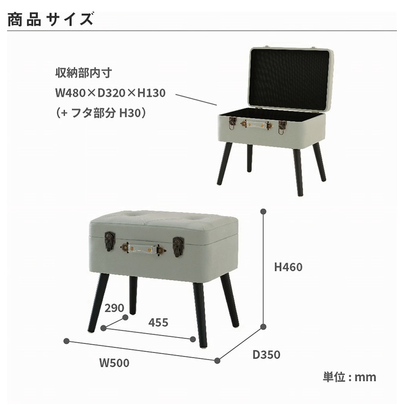 - トランクモチーフの収納付きスツールです。座面はトランク型になっており、ロックを外すとものを収納できます。 収納スペースはたっぷりあり、用途に合わせてご使用いただけます。組立は脚をくるくる回して取り付けるだけ。 不慣れな女性でも簡単に取り付けができ、すぐにお使いいただけます。脚先には床への傷を防止する樹脂パーツ付き。※トランク部分のカギは飾りとなります。●組立品●重量:約5.95kg