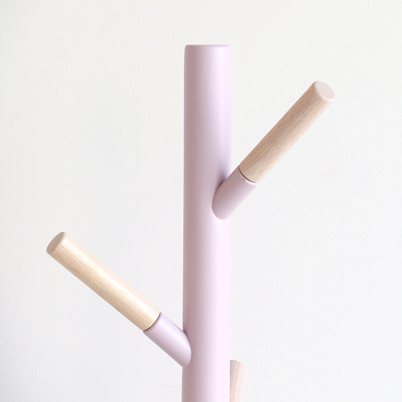 子ども用サイズのポールハンガーです。おしゃれな佇まいでお子様の服やカバンをスッキリ収納してくれます。土台以外の部分はすべてラバーウッドの天然木を使用しています。 全体を一色で塗りつぶすとと重たい印象になってしまいますが、天然木の質感をアクセントに取り入れ、軽やかな印象に。支柱のつなぎ目部分は角を取ったデザイン。 つなぎ目を隠すのではなく、つなぎ目そのものに美しい陰影が出るように工夫しました。組立はくるくる回してつなげていくだけ。 女性でも一人で簡単に組み立てできます。床と接する部分には8ヶ所にフェルトを貼っていて、床を傷つけないようになっています。 接地部を多くすることで安定感もアップしています。※木製品のため商品の色味・木目が若干異なることがあります。●組立品●耐荷重:各フック2kg●重量:約2.1kg●組立時間:約15分