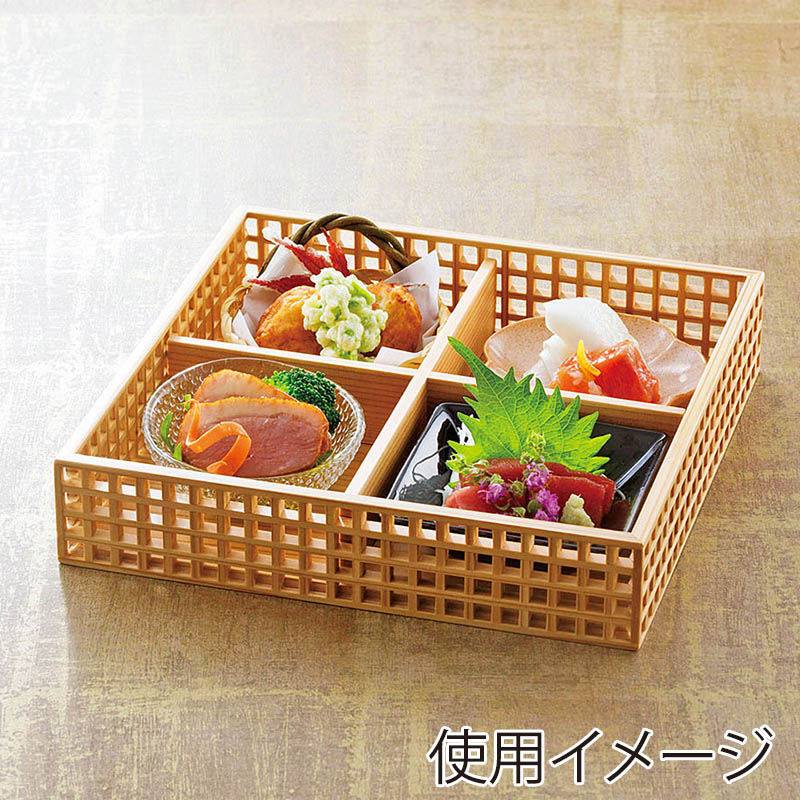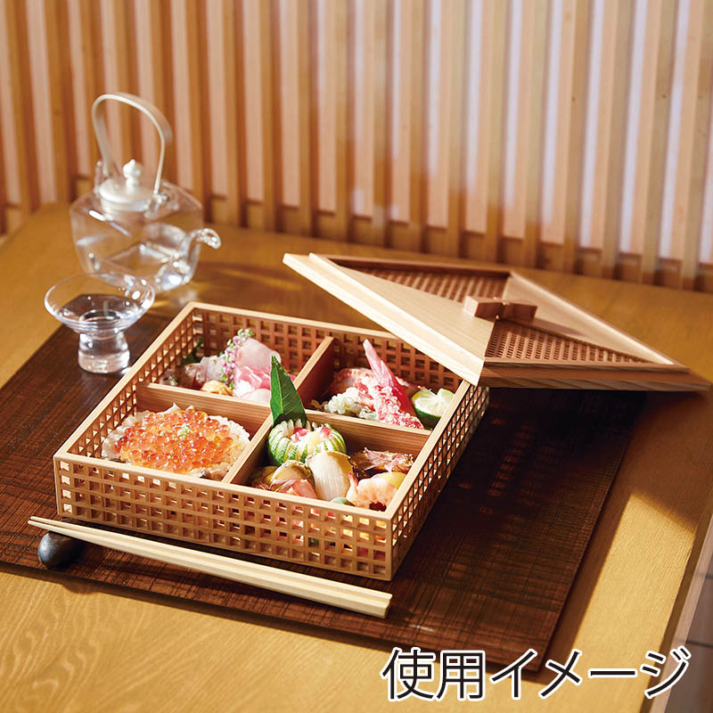 秋田杉を格子状に組んだ、四ツ仕切弁当です。底板は小口が見えない内込め加工など細部までこだわり抜いた仕上りです。※身・仕切セット(蓋はついておりません)※中子は含まれません。ミニサイズよりお選びください。