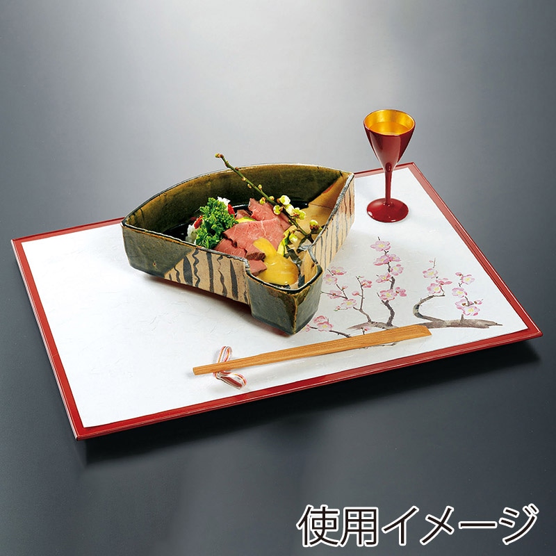 若泉漆器 尺3寸長手 和紙敷マット 梅 2月~4月 B-26-42 100枚/束(ご注文単位1束)【直送品】