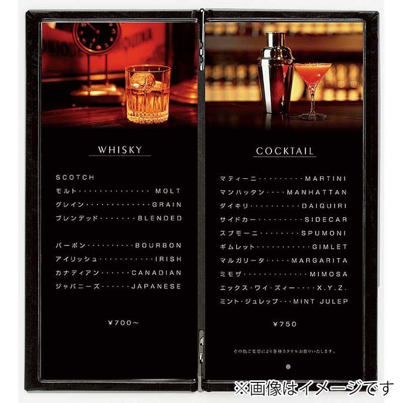 シンビ 洋風メニューブック UD-103 縦長 4ページ 黒 1冊(ご注文単位1冊)【直送品】