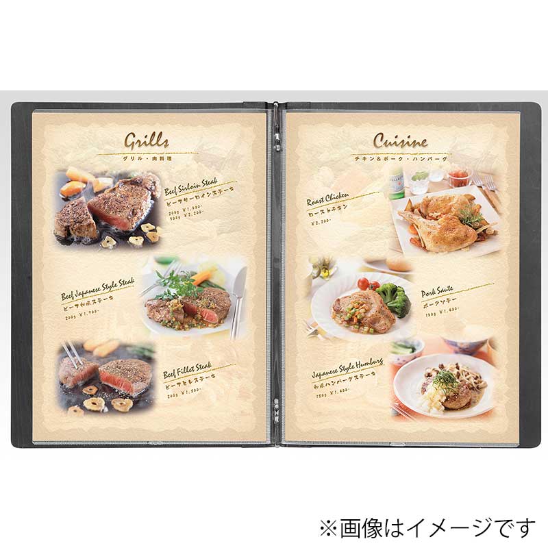 木の肌触りがお客様を心地良くしてくれます。メニュークリップ仕様。●A4対応/抗菌ビニール-55/MC-2G黒(2本)