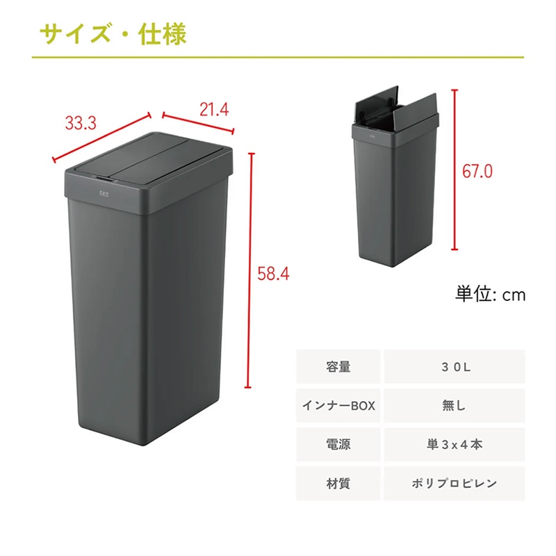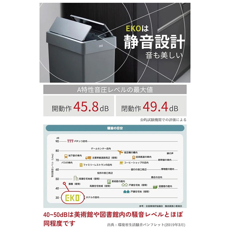 EKO JAPAN 自動開閉ゴミ箱 エックスウィング ライト センサービン 30L グレー EK6277P-30L-GR 1台(ご注文単位1台)【直送品】