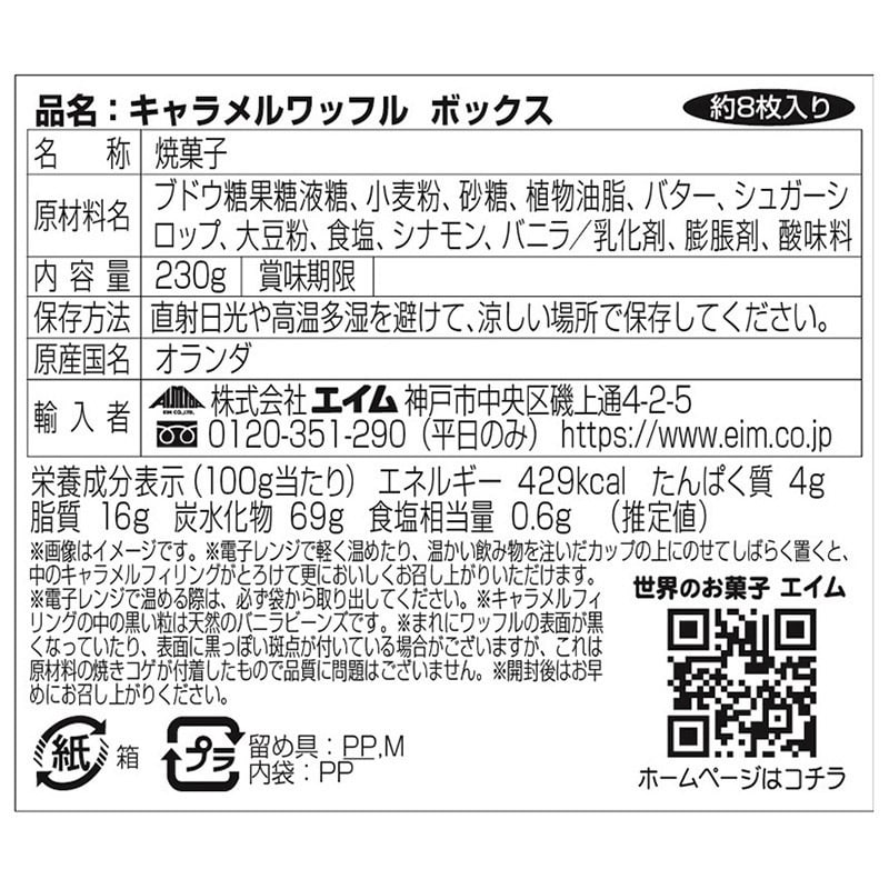 エイム ダールマンズ キャラメルワッフル ボックス 230g 1箱※軽(ご注文単位45箱)【直送品】