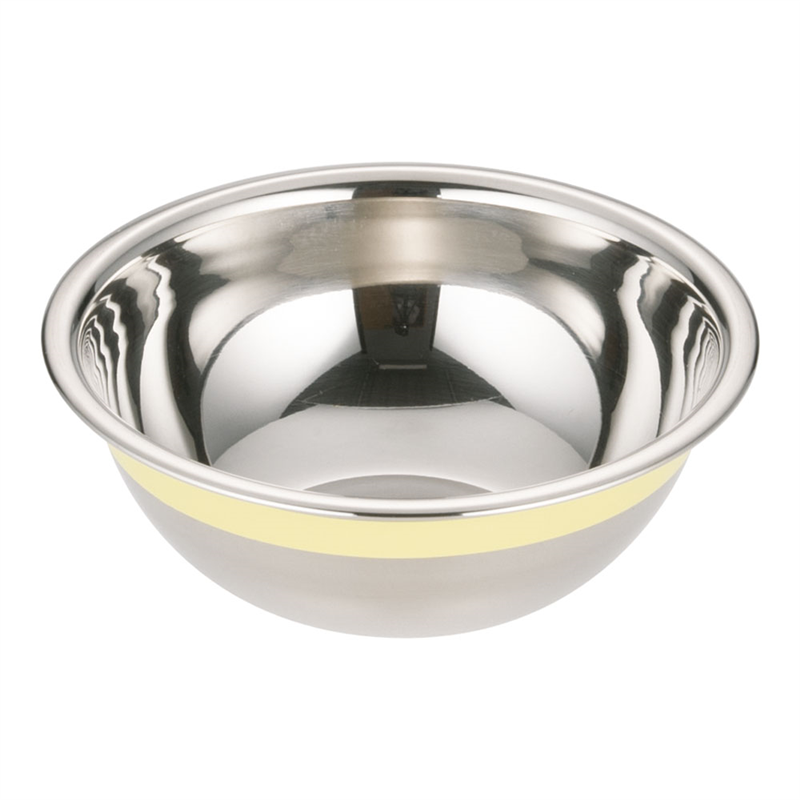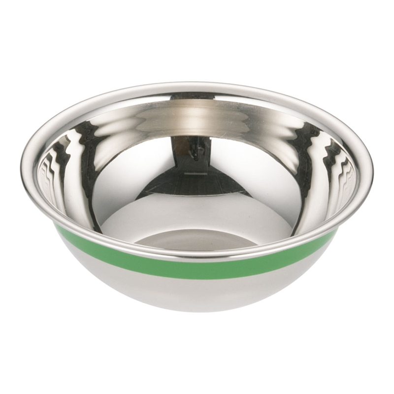 ●(HACCP対応商品)・HACCPとは食品の安全性を確保することを目的とした食品安全国際規格です。集団食中毒のような食品による事故を防ぐために考えられた、安全な食品を作るための衛生管理法です。日常の衛生管理を行うことで病原菌の汚染や増殖を防止し、食中毒などを予防します。日本でもすべての食品の衛生管理にHACCPの導入を奨励しています。・エッジにカラーコートしてありますので、スタッキングしても見やすくなっております。・縁の4ケ所にカラーコーティングしてあります。・カラーは、黒、茶、青、緑、赤、黄の6色です。特殊焼付加工により色落ちしません。●内径×深さ:180×70mm