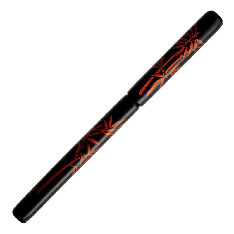 天然の竹軸に越前塗と蒔絵を施した高級筆ペンです。越前漆器の起こりは、約1500年の昔に遡るといわれています。その歴史の中で磨き上げられてきた伝統の匠の技で仕上げられる独特の風合い。永く使っていただくほどに、手になじむ逸品です。奈良筆と同じ製筆技術で手づくりした穂先。コシの強い人造毛を使い、一本ずつ丹念に造筆しております。水性顔料インクを使用しており、筆跡は乾くと水に流れず色褪せしにくいため、長期保存にも適します。カートリッジ式で経済的。専用のスペアインク「SKI-200」や替え穂「AK-1000H」があり、長くご使用いただけます。桐箱入り。