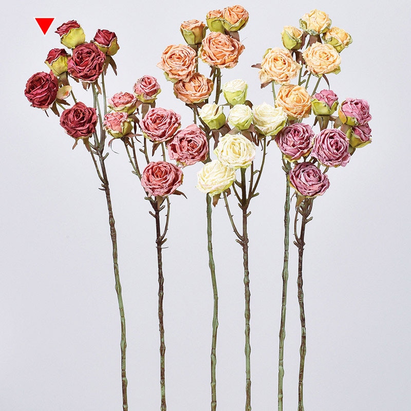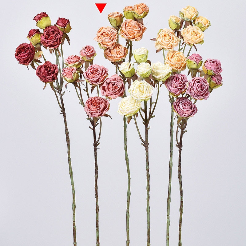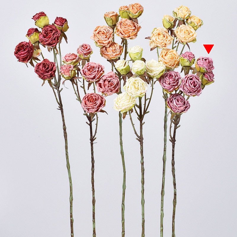 アスカ商会 造花 A-34406 ドライタッチローズ×6 #002A アンティ-クレッド 1本(ご注文単位1本)【直送品】