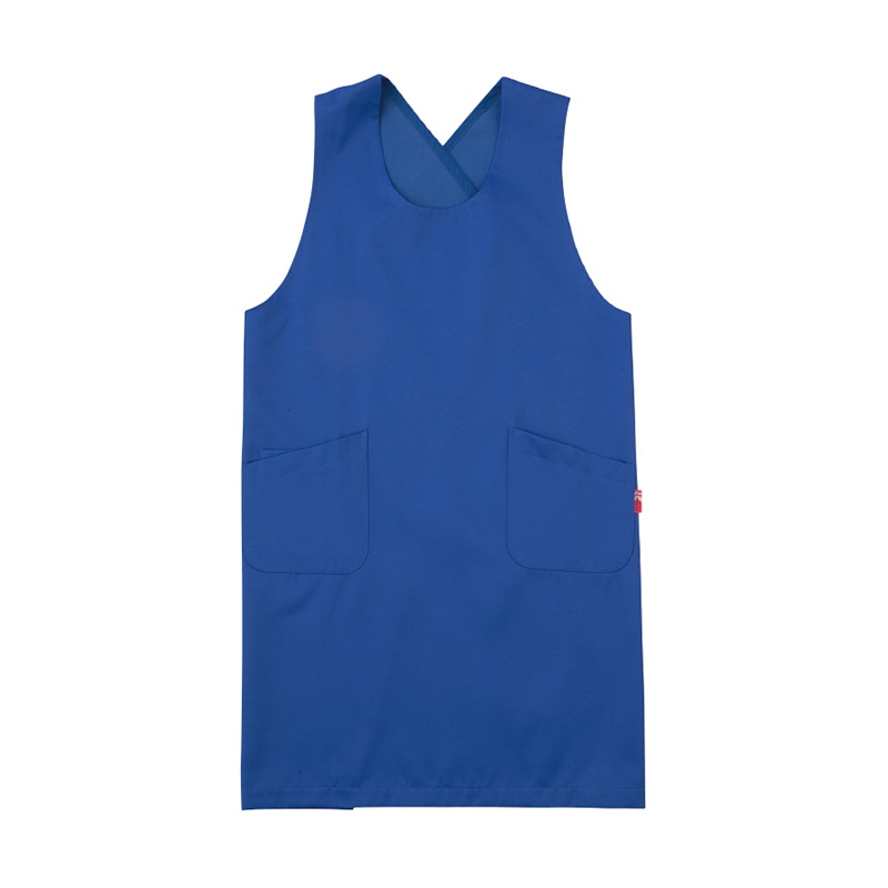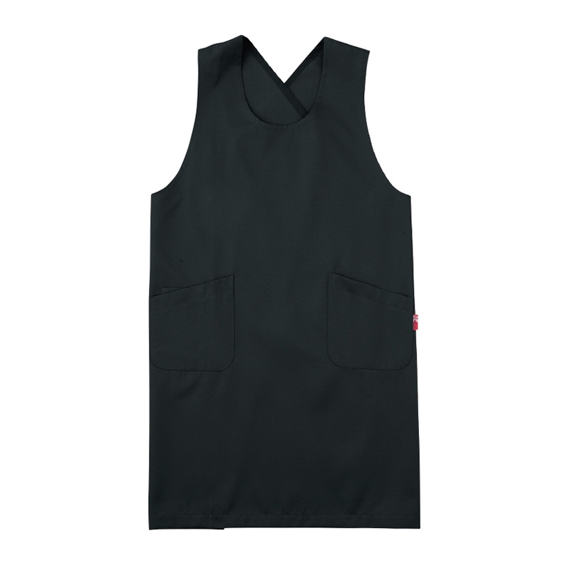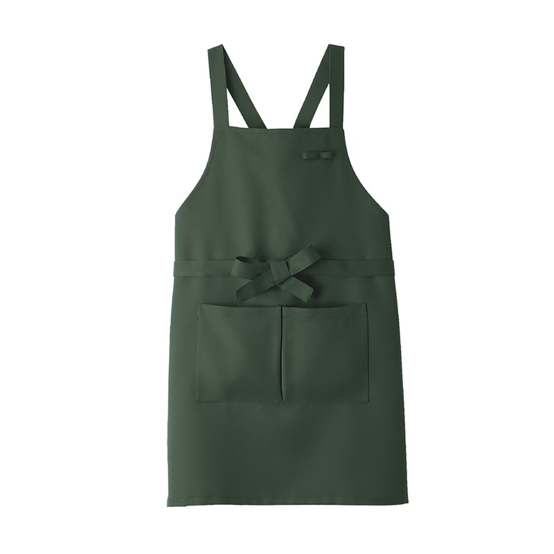 シンプルで飽きのこないデザインで身体をすっぽりカバーするドレスエプロン。働く女性の身体のラインをより美しく引き立たせます。どんなウェアにも合い、動きやすさにも優れています。素材には撥水加工が施してあるため、水を垂らすと蓮の葉が水をはじくようにきれいな水玉ができ、汚れにくく、いつもクリーンな着心地をキープします。防汚、撥水性、撥油性、帯電防止の効果に加え、男女兼用でご使用いただけます。
