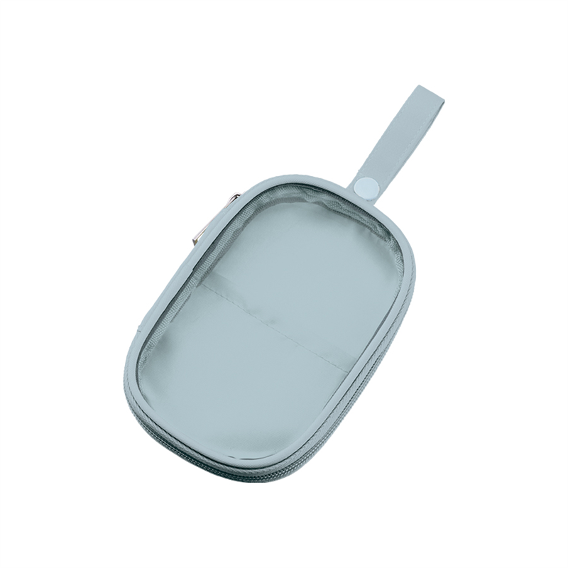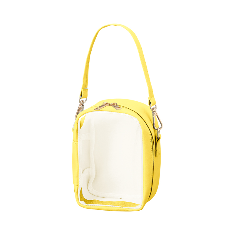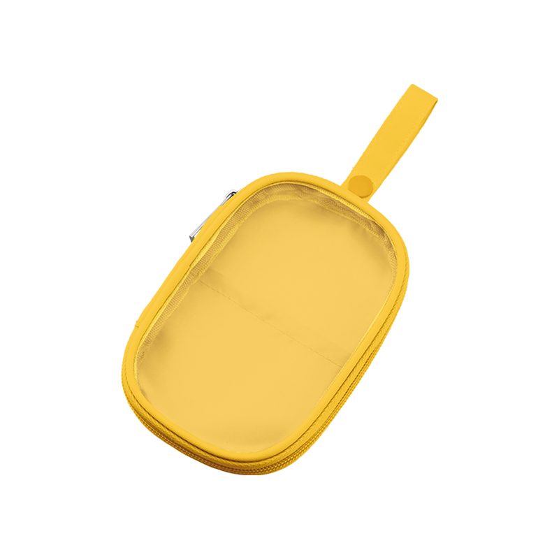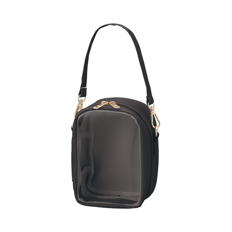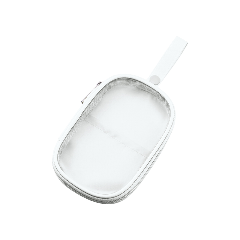 ぬいぐるみポーチです。全面は中身が見えるクリア素材で、ぬいぐるみや推し活グッズを収納・保護することができます。口が大きく開くダブルファスナーで、出し入れがしやすく使い勝手の良い仕様です。バッグに下げられるストラップ付き。さらに便利な背面ポケット付きなので、チェキやトレカをちょっと入れておくのに便利です。裏面ポケット部分にシルク単色印刷が可能なのでぬいぐるみと合わせたイベント物販などにおすすめです。●収納可能サイズ:約W100×H140×D70mm