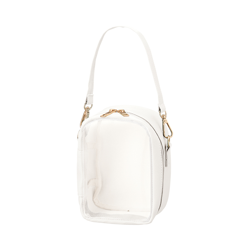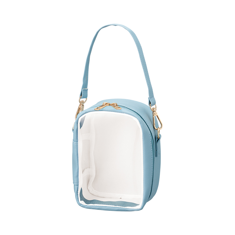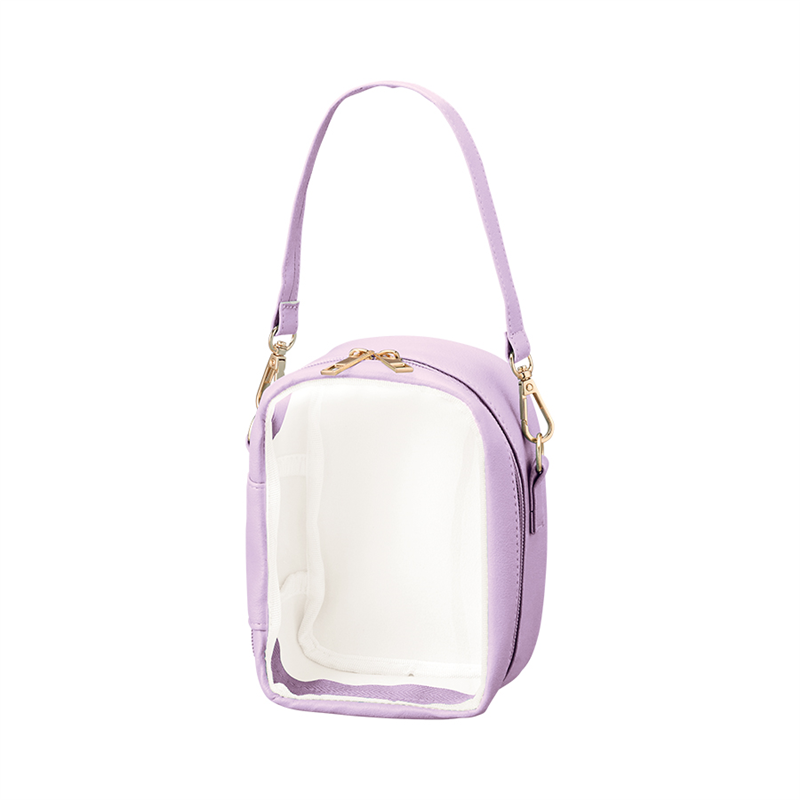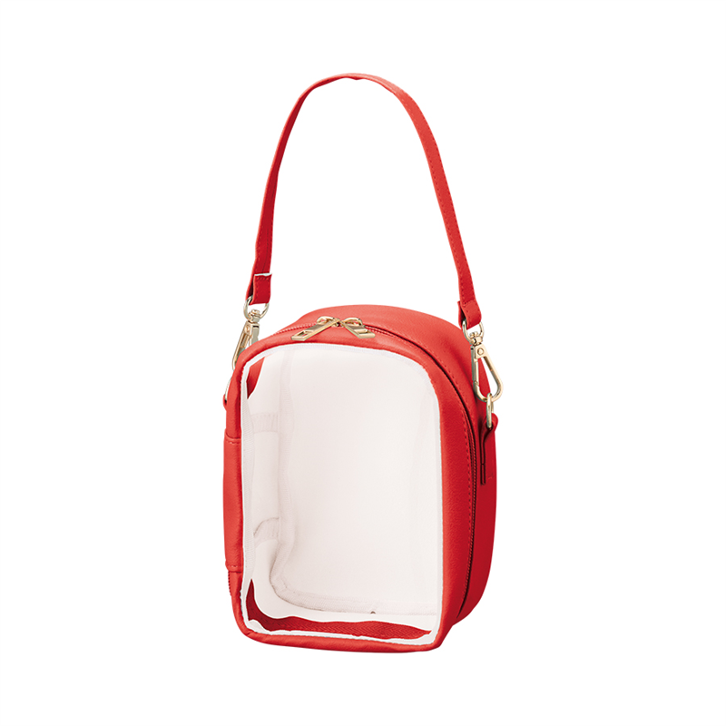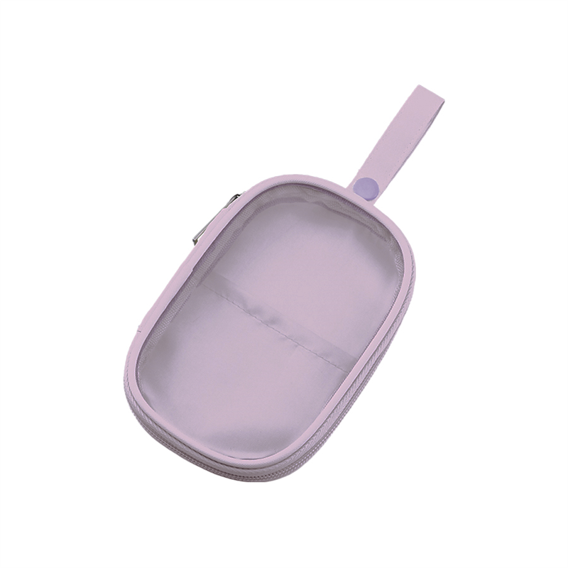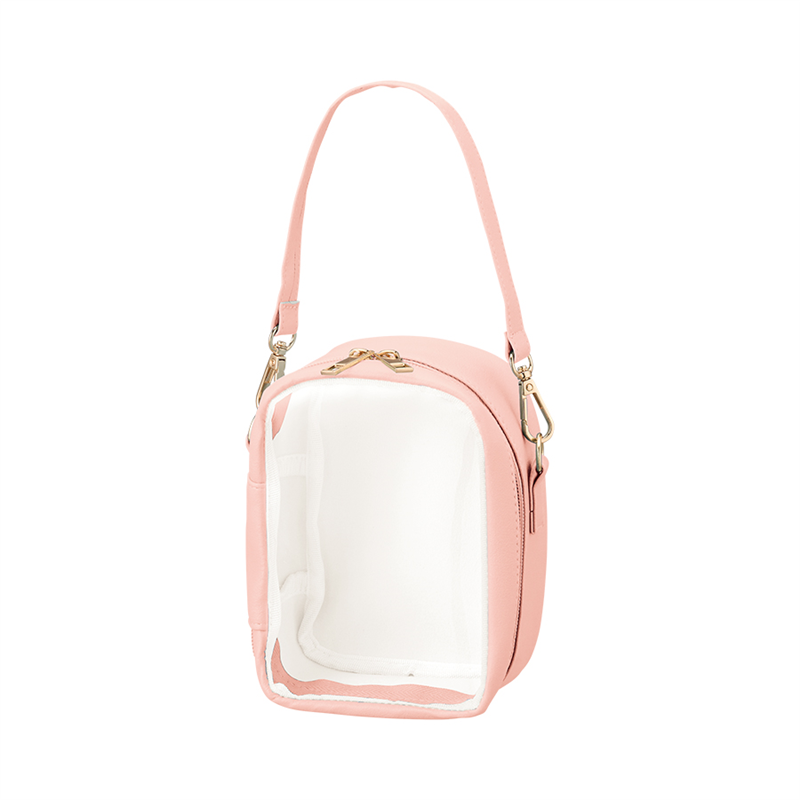 メッシュポケット付きのクリアロングポーチです。内側のポケットには標準サイズ(W88×H62)のトレカや、アクスタなどを収納でき、また中身が見えるクリアポーチ部分にはお気に入りのコレクションをかわいくデコレーションして楽しむこともできます。大きめのアクスタ(約W80×H170mm)まで収納することも可能です。推し活定番の缶バッチも、メッシュポケットにピンを通せば見せたい向きに固定して入れることができます。サイドにループがついているため、お手持ちのキーホルダーやカラビナをつけることができ、また横長デザインなのでペンケースとしてお使いいただくのもおすすめです。ポーチ表面に単色またはフルカラー印刷が可能なため、キャラクターやアーティストオリジナルの推しグッズをおつくりいただけます。