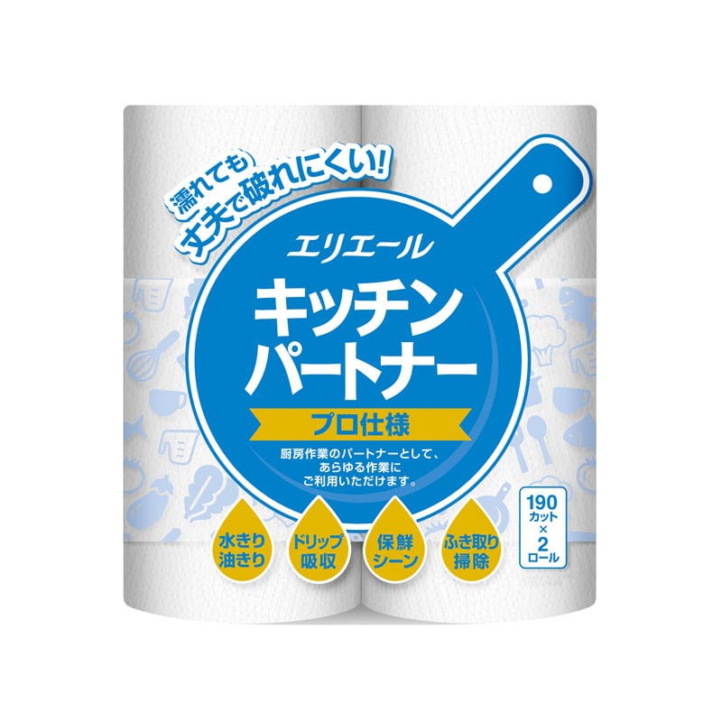 大王製紙 エリエール キッチンパートナー プロ仕様 190カット 2ロール/袋(ご注文単位1袋)【直送品】