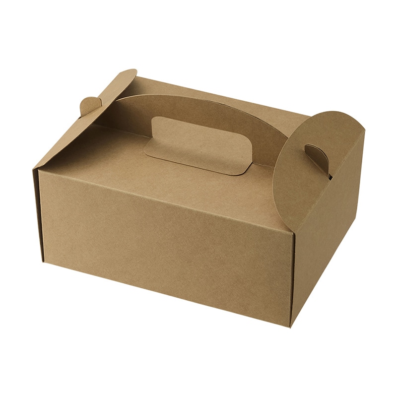 ナチュラルなクラフトテイストの持ち手付きケーキ箱です。カットケーキ2~3個が目安です。3層構造のため、強度が高いパッケージ。組立式の商品です。※食品の長期保存には適しません。●電子レンジ使用可●オーブン使用不可●入数:20枚