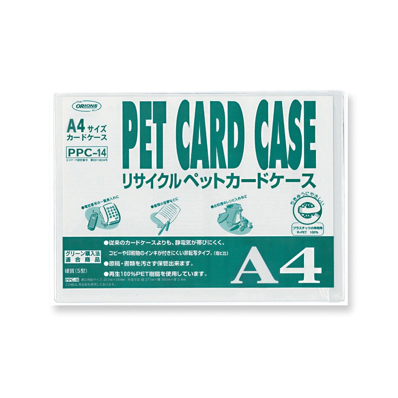 丈夫で長持ちする地球にやさしい環境対応リサイクルペットカードケースです。図面や地図、書類の保管、料理のレシピやメニュー表などに役立ちます。コピーや印刷インクがつきにくいので汚さずに保管できます。●素材の厚み:0.4mm●ウェルダー接着式●プラスチックの再利用R-PET80%