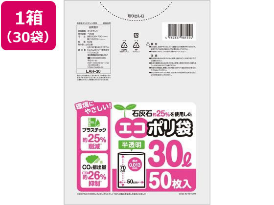 システムポリマー 石灰石約25%を使用したエコポリ袋 45L 50枚*20 1箱(ご注文単位1箱)【直送品】