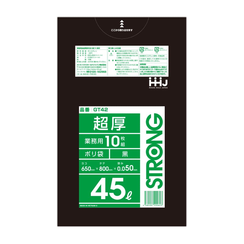 ハウスホールドジャパン ポリ袋 45L GT42 黒 10枚入 1束(ご注文単位30束)【直送品】