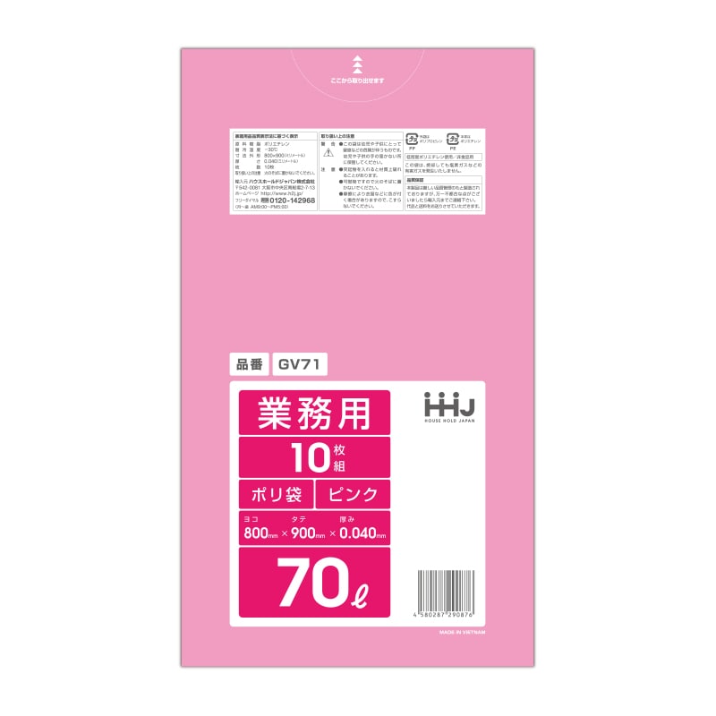 ハウスホールドジャパン ポリ袋 45L GV53 赤 10枚入 1冊(ご注文単位50冊)【直送品】