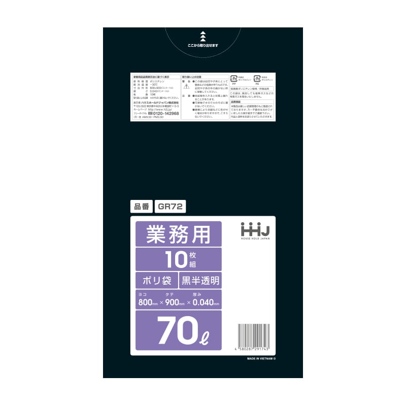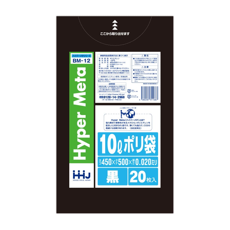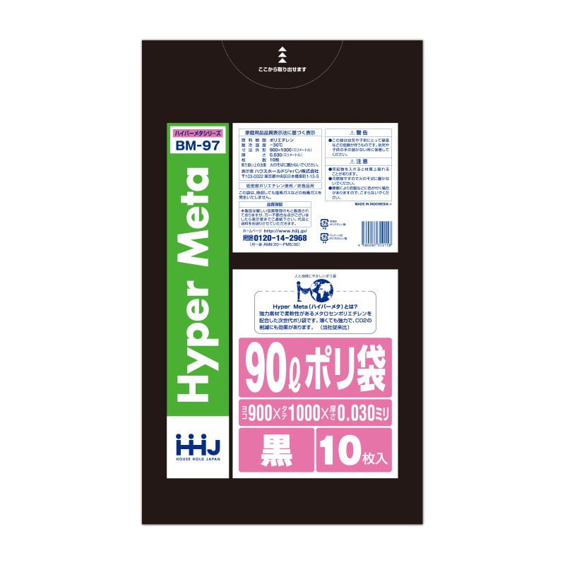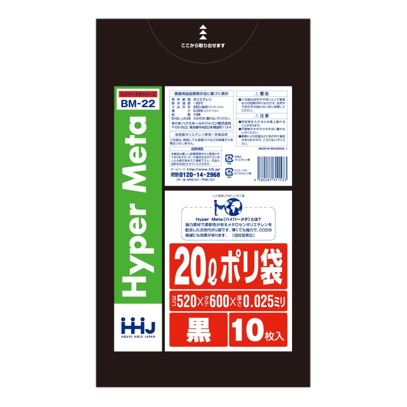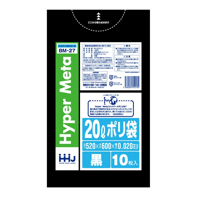 ハウスホールドジャパン ポリ袋 45L BM52 黒 10枚入 1冊(ご注文単位80冊)【直送品】