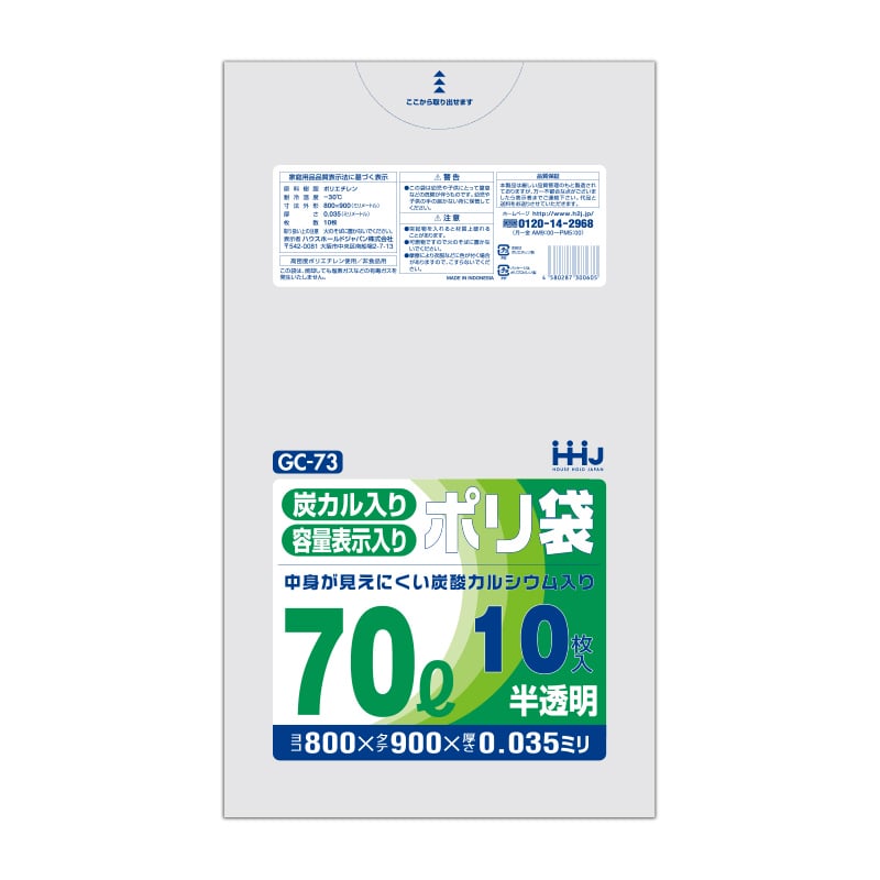 ハウスホールドジャパン ポリ袋 45L GH48 半透明 10枚入 1冊(ご注文単位80冊)【直送品】