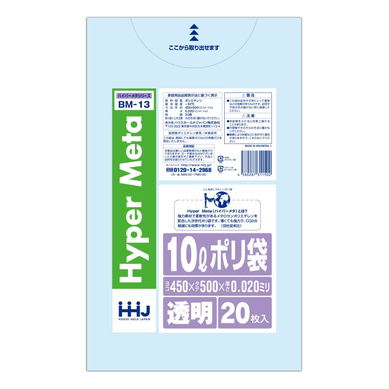 ハウスホールドジャパン ポリ袋 45L BM44 半透明 10枚入 1冊(ご注文単位70冊)【直送品】