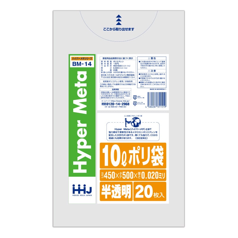ハウスホールドジャパン ポリ袋 45L BM54 半透明 10枚入 1冊(ご注文単位80冊)【直送品】