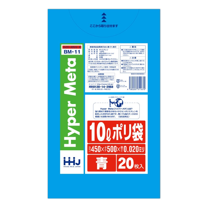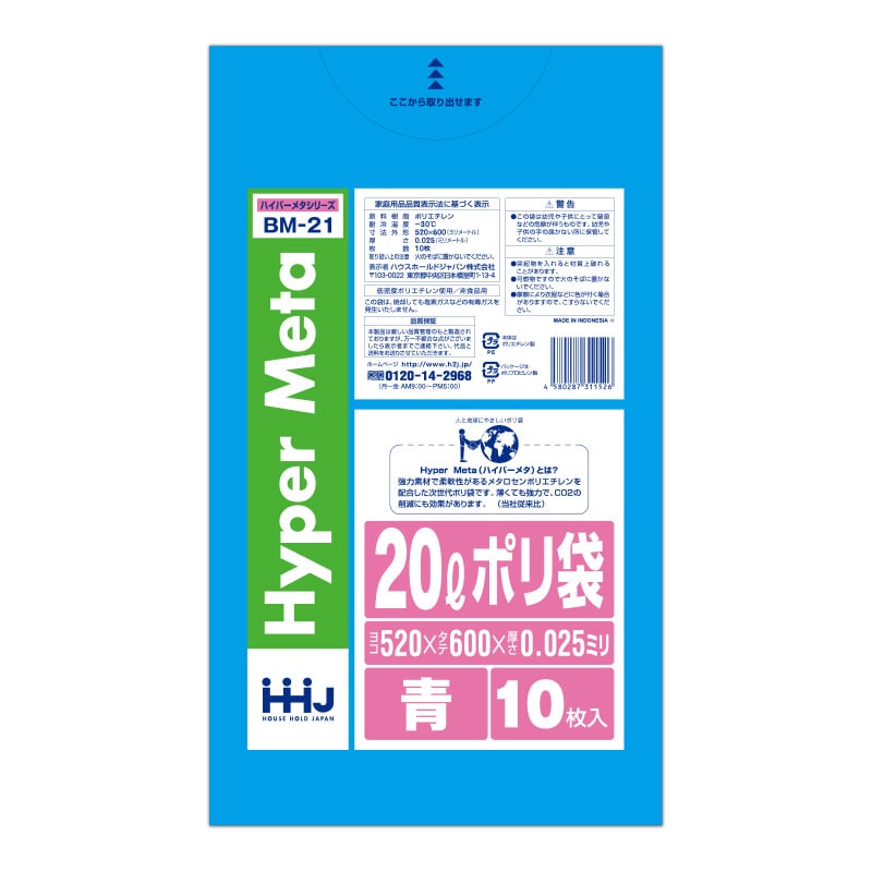 ハウスホールドジャパン ポリ袋 45L BM51 青 10枚入 1冊(ご注文単位80冊)【直送品】