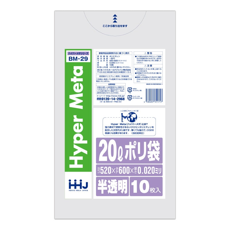 ハウスホールドジャパン ポリ袋 45L BM49 半透明 30枚入 1冊(ご注文単位30冊)【直送品】