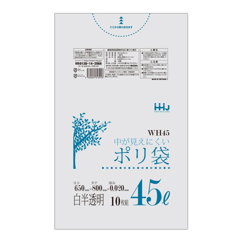ハウスホールドジャパン ポリ袋 45L WH45 白半透明 10枚入 1冊(ご注文単位80冊)【直送品】