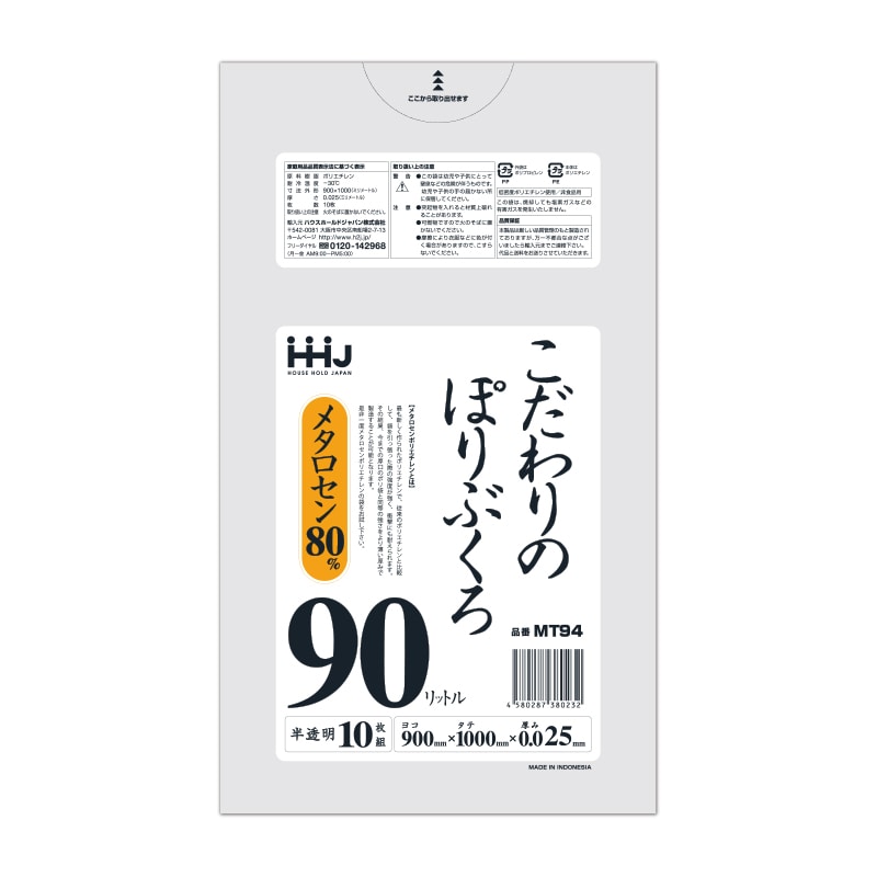 ハウスホールドジャパン ポリ袋 45L MT44 半透明 10枚入 1束(ご注文単位100束)【直送品】