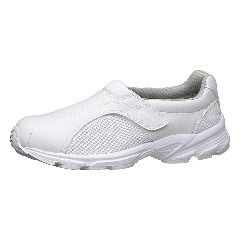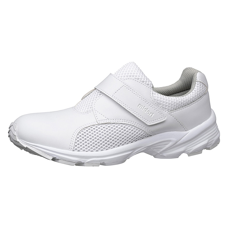 超軽量設計でアクティブに動けるメディカルシューズです。ハードな看護師・介護士業務を足元から支えます。クッション性に優れたEVAソールと衝撃吸収インソールが足へかかる負担を軽減します。サイドに通気性に優れたメッシュを使用し、靴内のムレを逃します。優れた屈伸性で屈み作業の多い看護師や介護士の方に最適です。足へ負担がかかりにくい超軽量シューズ。かかとに5mmの衝撃吸収クッションの付いたインソールを内装。履き心地の良いバンドタイプ。※つま先保護性能(先芯装備)はありません。●製法:C式●先芯:なし●中敷:EVAカップインソール●靴底:EVA/合成ゴム底