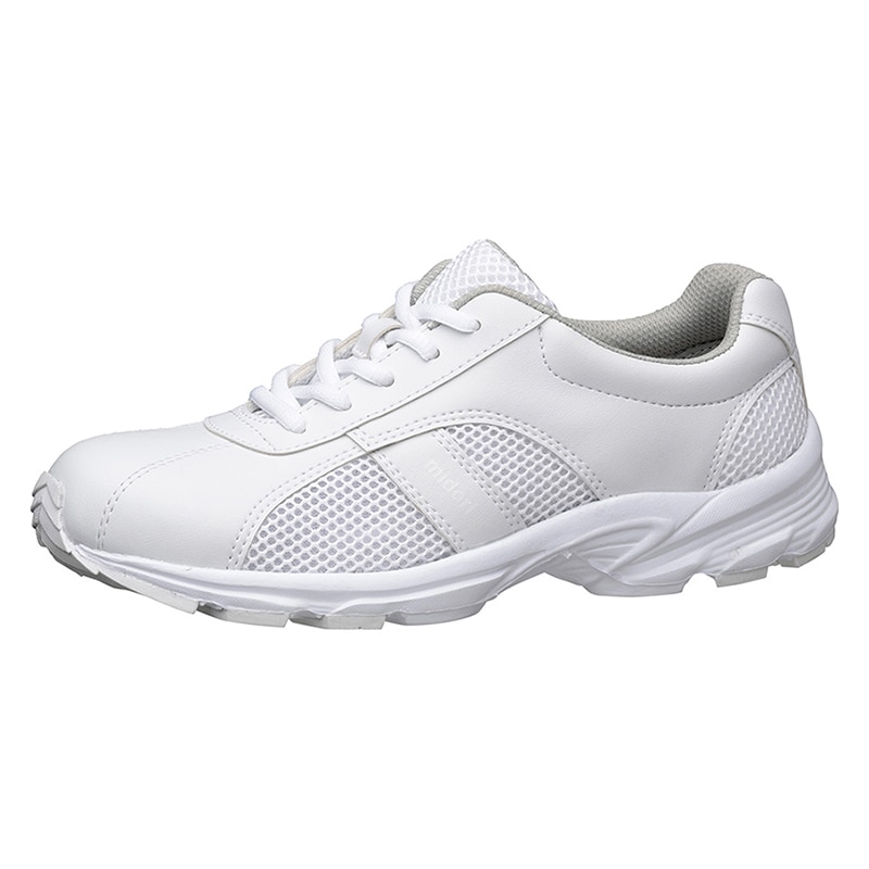 超軽量設計でアクティブに動けるメディカルシューズです。ハードな看護師・介護士業務を足元から支えます。クッション性に優れたEVAソールと衝撃吸収インソールが足へかかる負担を軽減します。サイドに通気性に優れたメッシュを使用し、靴内のムレを逃します。優れた屈伸性で屈み作業の多い看護師や介護士の方に最適です。足へ負担がかかりにくい超軽量シューズ。かかとに5mmの衝撃吸収クッションの付いたインソールを内装。履き口広めで脱ぎ履きしやすい。シンプルな靴紐タイプ。※つま先保護性能(先芯装備)はありません。●製法:C式●先芯:なし●中敷:EVAカップインソール●靴底:EVA/合成ゴム底