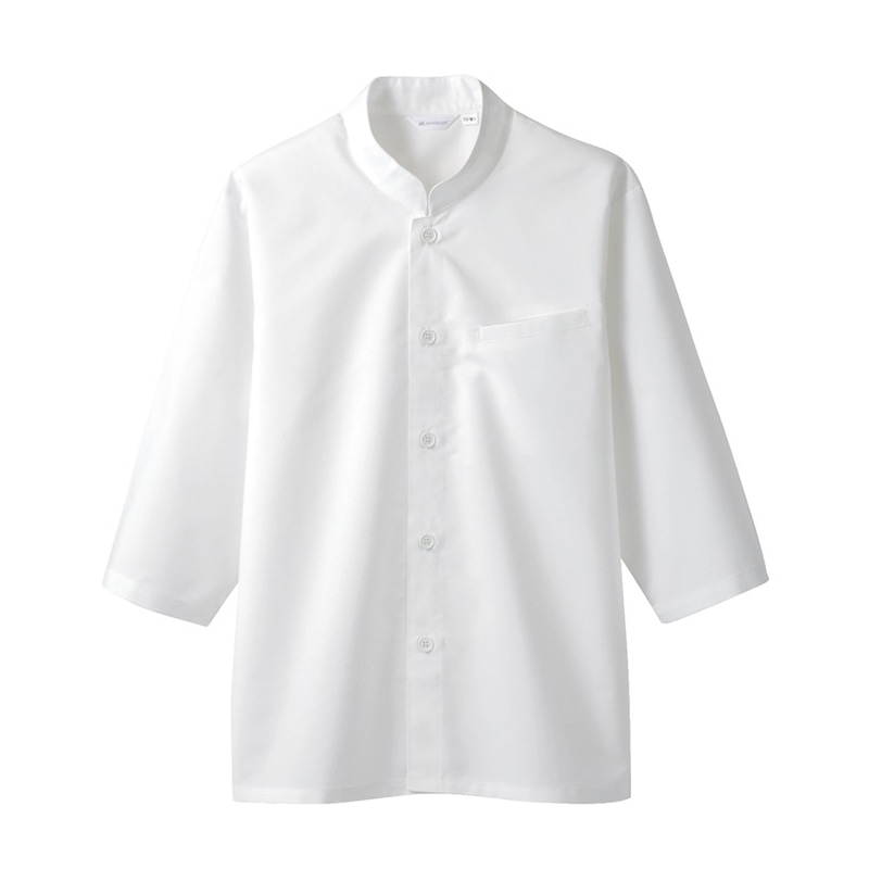 住商モンブランの調理用 シャツ、抗菌性を付与した男女兼用7分袖、ポリエステル85%、綿15%、スタンドカラーがかわいいデザインが特徴の調理用 シャツです。