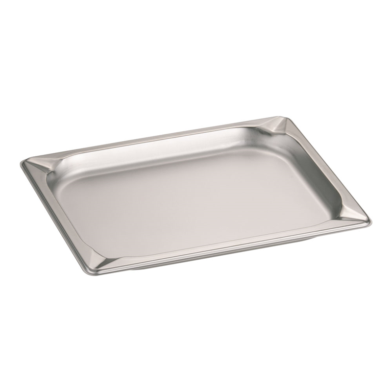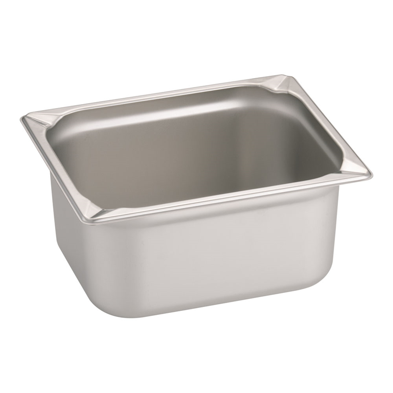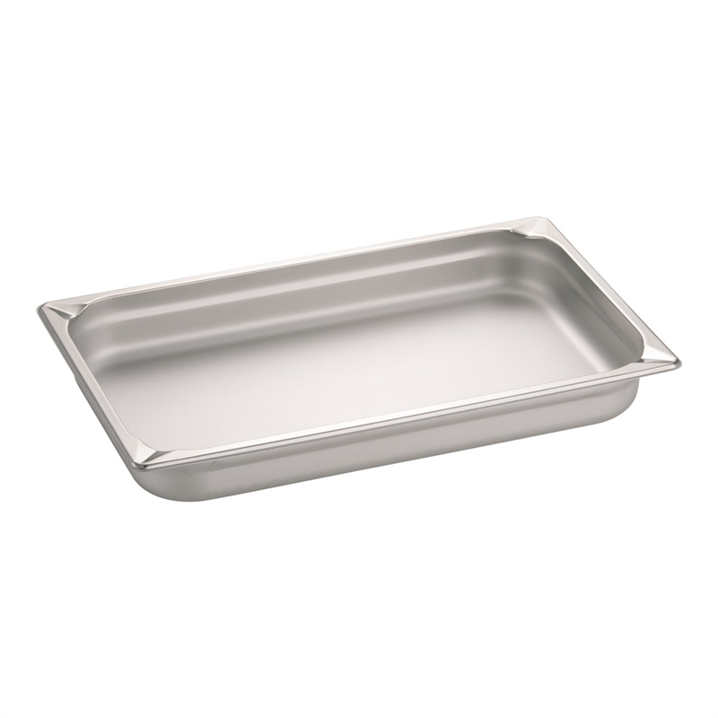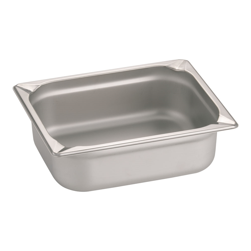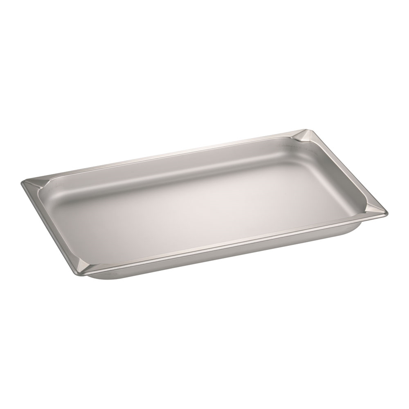 ●抜群の作業性と確かな安全性!まさにパーフェクトなホテルパン!!変形しにくい様に、コーナー部分を補強!●材質:18Cr-5Ni-8Mn-N特許申請済:公開番号特開2005-239286●納得の作業性コーナー部分の凹みは変形や密着を防ぐだけでなく、他のホテルパンや容器への移し替えをする時の注ぎ口としてもご使用いただけるようにデザインされています。●納得の機能性本体側面の段差と特殊コーナー加工で従来製品にはないほどのスタッキング性能を誇ります。保管時の積み重ねによる埋まり込み(密着状態):を防ぎ簡単に取り外すことが出来ます。「外れない!」という「イライラ」を解消し、無理に外そうとする時に起こりやすい指先のケガも防ぐ事ができ安全です。●納得の安全性本体の渕部分は強度を保つ為に折り曲げてありますがその外側を更に外に折る事により指先への負担を軽減し、より安全に持つ事が出来るように設計されています。安心の板厚0.8mm仕様。耐久性抜群でプロの過酷な使用にも耐えます。1/1・2/3・1/2サイズはスチームコンベクションでの使用を考慮して板厚を0.8mmにしてあります。抜群の強度を持ち、調理中のねじれを防ぐのでスチームロスを減らし熱効率を高めます。(2/1サイズは板厚1.0mmとなります。):●メーカー品番:23025●サイズ表示:44960●間口×奥行×深さ(外寸mm):354×327×25●板厚(mm):0.8●容量(L):1.4