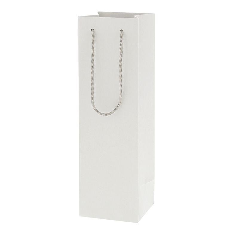 再生紙配合の環境対応紙を使用した紙袋です。少しグレーがかった色合いがスタイリッシュです。持ち手も環境にやさしい紙紐を採用しております。アクリル紐のような柔らかさがあります。ワインボトル1本を入れるのに最適です。ギフト用にもおすすめです。●入数:10枚●手紐:紙紐(グレー)