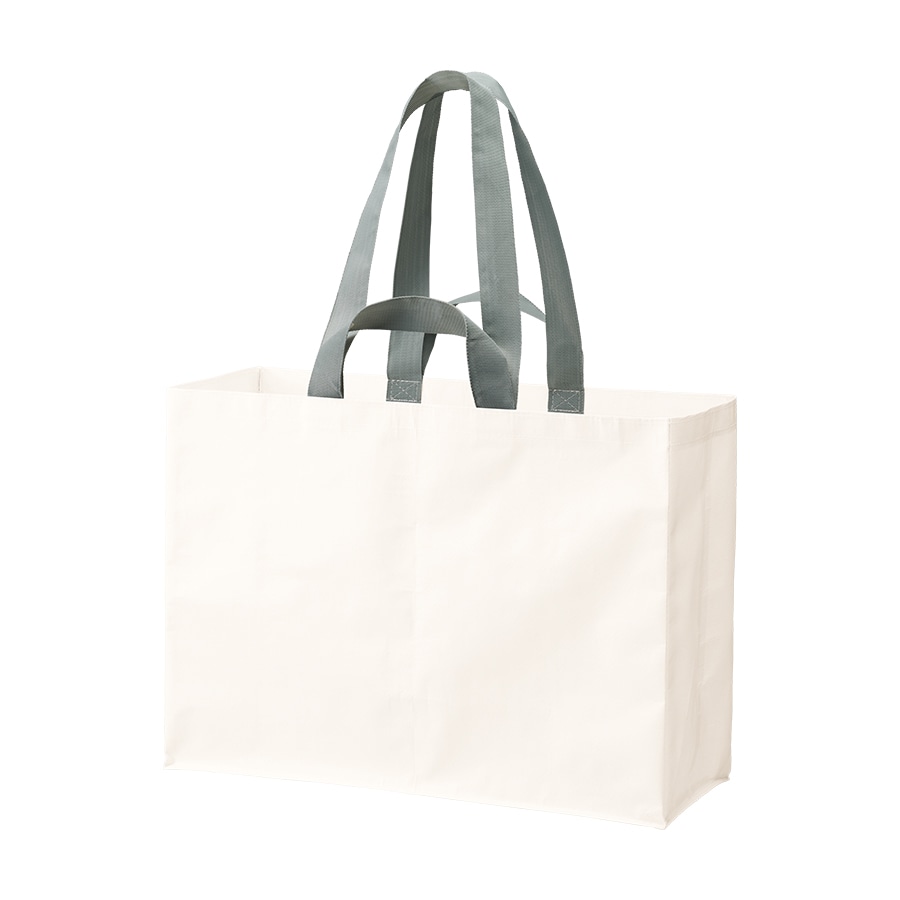 ●サイズ:持ち手(ロング)/38×700mm ●軽いレジャーシート素材で作られた持ち運びに便利なトートバッグです。●再生PP使用のSDGsに貢献するグッズになります。●濡れにくい素材で、雨の日やランドリーバッグとしてもお使いいただけます。●2ハンドル仕様で手持ち&肩掛け両方可能です。●カラーは、ホワイト、ブラック、ベージュ、オリーブの4色展開です。