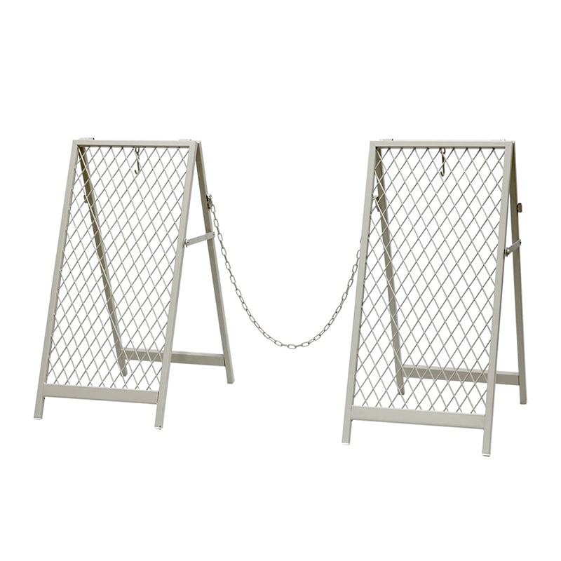 駐車場、駐輪場、進入禁止、Uターン防止等、様々なシーンで活躍する、ヴィンテージライクなゲート2セットです。移動や持ち運びもしやすく、自宅ガレージ前や、閉店後のレストラン駐車場など、人や車の進入を防いでくれます。用途にあわせた看板でカスタムすれば、よりわかりやすくなります。チェーンは取り外し可能なので、本体1個だけでも使えます。設置は簡単、開いてフックをかけるだけ。本体の両端にチェーンホルダーが付いているので、2セットつなげて長いチェーンスタンドが作れます。●重量:4.8kg/セット●仕上げ:粉体塗装●完成品