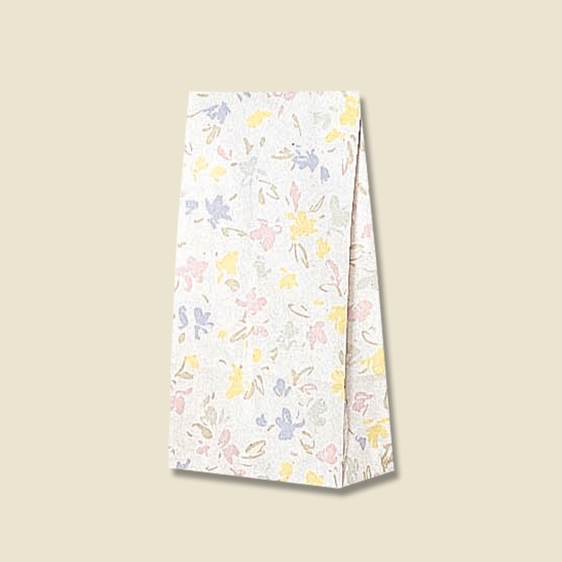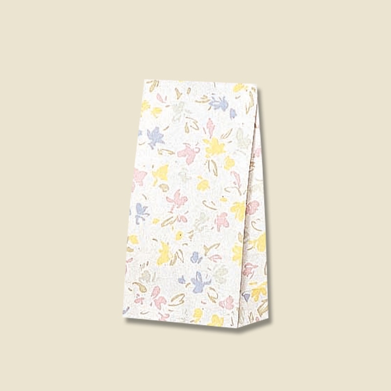 全面にカラフルな花柄を配しました。高級感のあるマチの小さい角底袋です。●入数:100枚