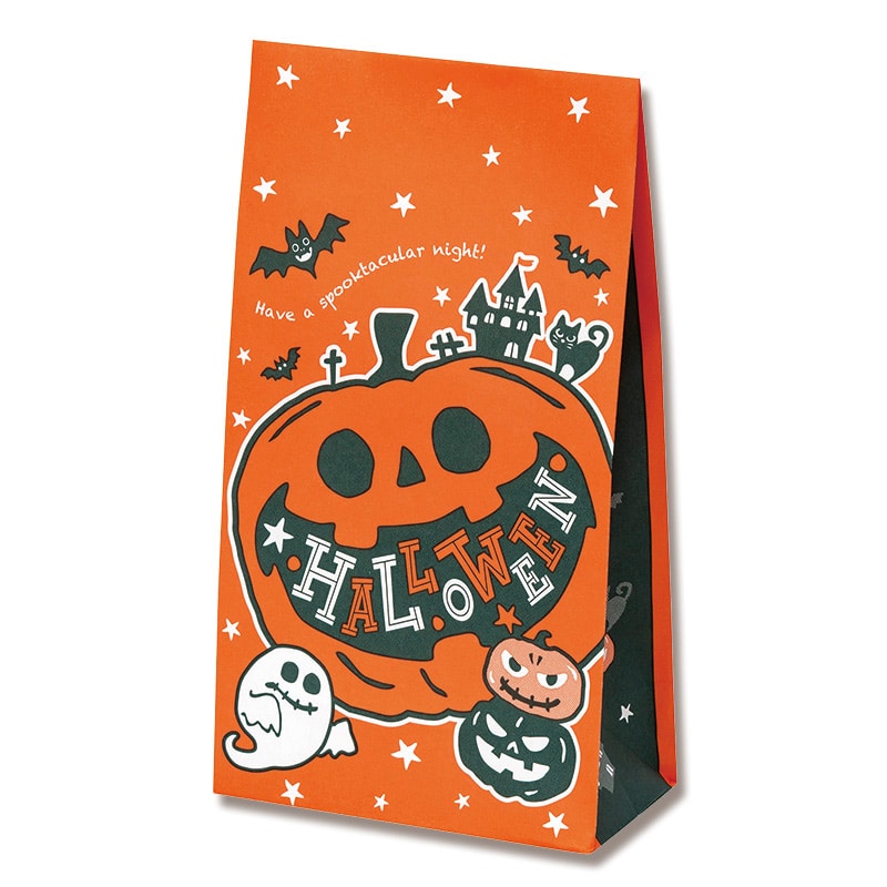 豪快に笑うジャック・オーランタン!笑い声に引き寄せてコウモリやゴーストが集まってきて賑やかなハロウィンを盛り上げます。まさに「ビッグスマイル」な紙袋でハロウィンのイベントやお菓子売り場を賑やかに!お菓子の詰め合わせにぴったりな小型サイズ。50枚入り、表裏同柄です。*2019年新柄です。