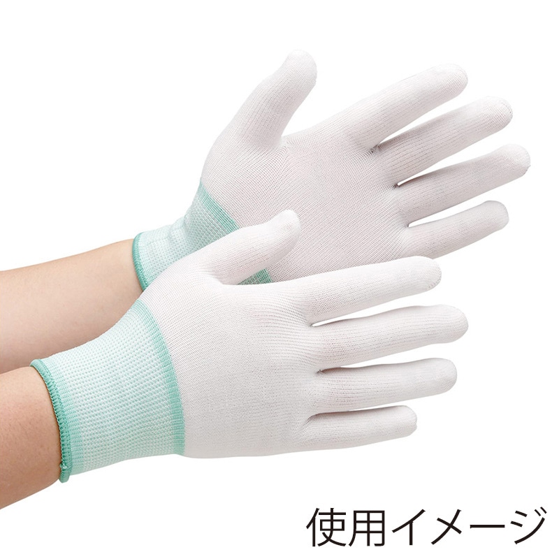 ●ポリエステル繊維のさらっとした装着感です。●精密機器、自動車部品の組立。●製品検査。●屋内軽作業、掃除。●アソート、パッキング作業。●農場、園芸作業。●色:ホワイト●サイズ:M●全長(cm):21.0●手のひら周り(cm):17.4●中指長さ(cm):7.4●厚さ(mm):0.6●ゲージ数:13●リストカラー:グリーン●13ゲージ編●繊維部:ポリエステル●すべり止め部:ポリウレタン(PU)