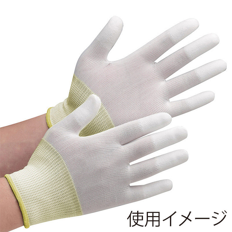 ポリエステル繊維を使用した、リーズナブルな手袋です。指先コーティングタイプ。物がつかみやすく、作業性抜群です。手首部のオーバーロック加工により、繰り返し洗濯して使用可能です。●用途:電子部品、精密機器の組立、検査など●13ゲージシームレス編●リストカラー:白●入数:10双