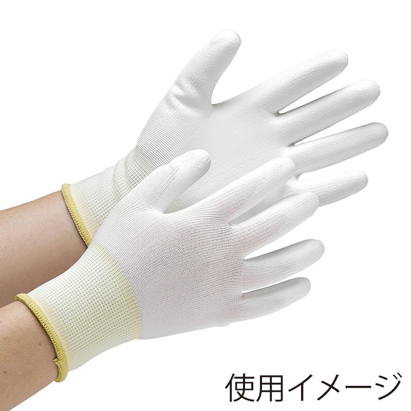 ポリエステル繊維を使用した、リーズナブルな手袋です。手のひらウレタンコーティングタイプ。物がつかみやすく、作業性抜群です。繊維部分にポリエステルを使用し、さらっとした装着感。手首部にほつれを防ぐオーバーロック加工を施しており、繰り返し洗濯して使用可能です。また耐摩耗性にも優れ、鋭利な製品の組立・検査工程での耐久性が向上しています。●13ゲージシームレス編●リストカラー:白●入数:10双