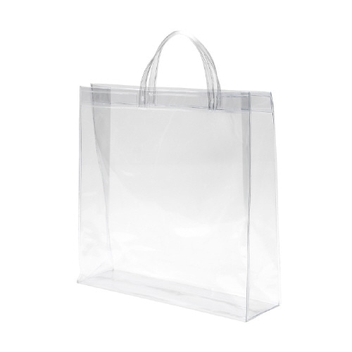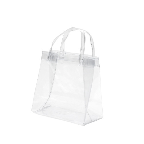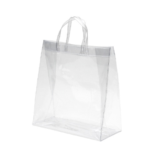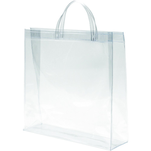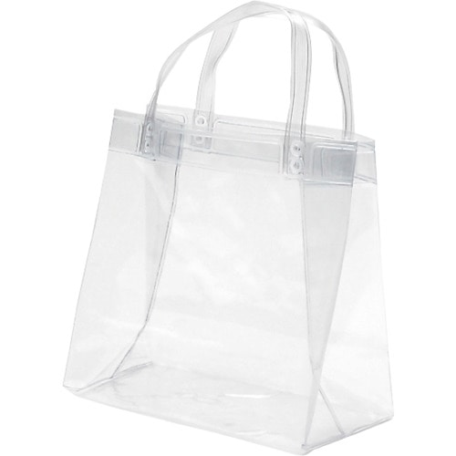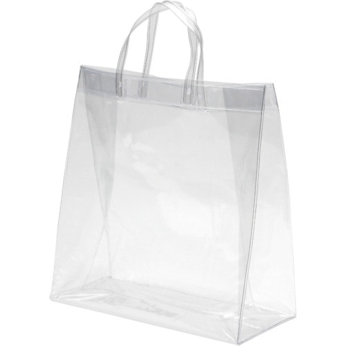 透明な、塩化ビニール製の手提袋です。水気にも強いので、水着入れやセール時の未精算商品の持ち運び、売場での店員の私物入れなど幅広くご使用いただけます。