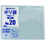 LDポリエチレン製の透明な袋です。手触りがやわらかくしなやかな素材です。 厚み20ミクロンの薄口シリーズです。豊富なサイズバリエーションを取り揃えていますので、中身に合わせてお選びいただけます。あらゆる物の収納や保管、分類など様々な用途にお使い頂けます。吊り下げ用の紐は付いておりません。食品衛生法規格基準適合商品です。●入数:100枚