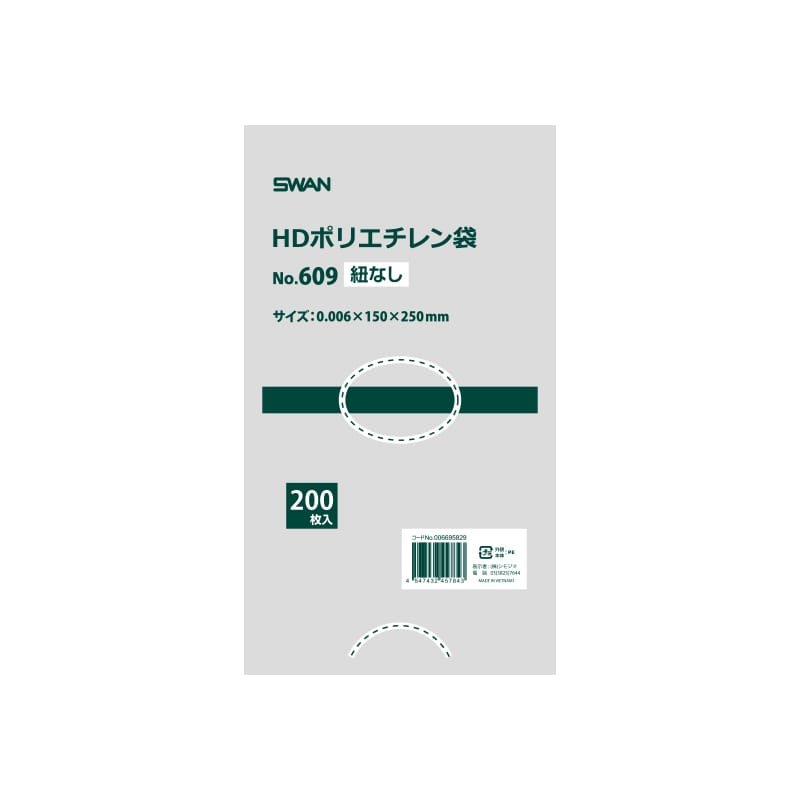 SWAN ポリ袋 スワンHDポリエチレン袋 0.007mm厚 No.709(9号) 紐なし 200枚/袋