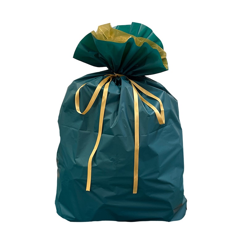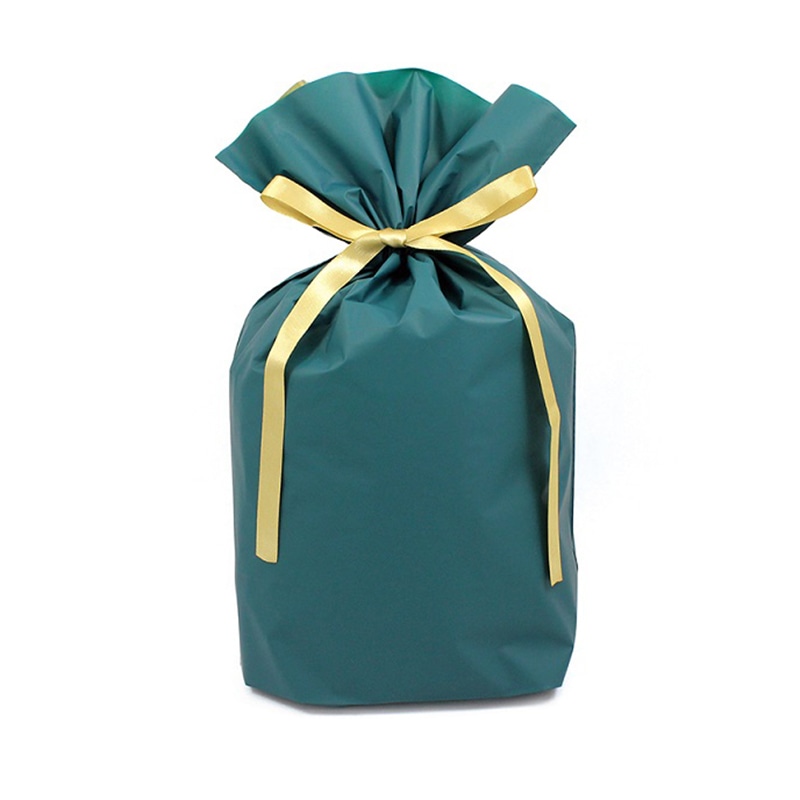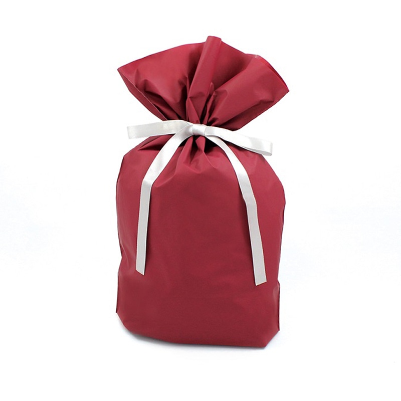 梨地ポリエチレンとLDポリエチレンの二重袋になっています。平袋タイプでマチはありません。リボンの両端を引っ張るだけで簡単にラッピングできます。ぬいぐるみなどが入ります。※1枚ずつ4つ折りされているため折り筋が付きます。※水濡れや摩擦により色移りする場合があります。※商品の特性上、表示サイズと若干異なる場合があります。●入数:10枚
