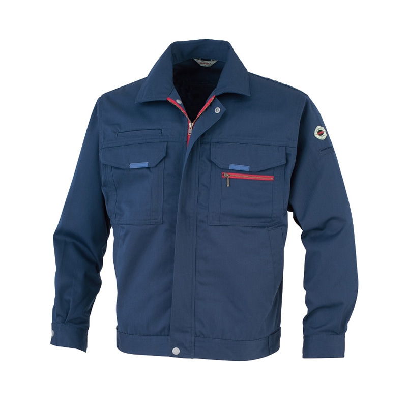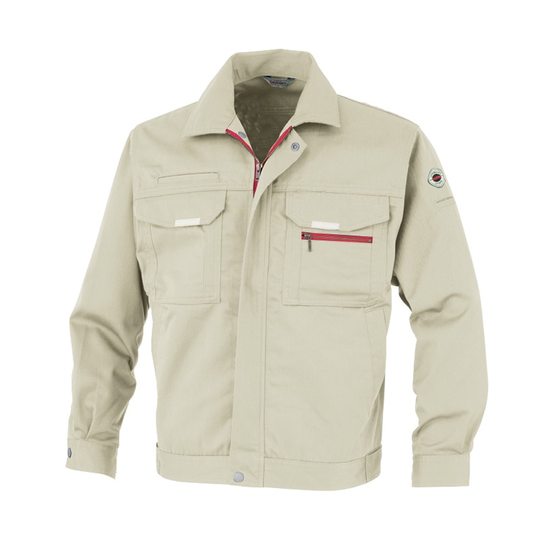 天が二物を与えた長袖ブルゾン。クラシックモダンのテーマと上品でワイルドという相反する二面性を兼ね備えた定王作業服。胸と袖口に施したシークレット反射テープは、身生地と同色の反射テープを使用することで、サラッとしたデザインに仕上がっています。夜間は光をしっかり反射。ワンポイントで、ひし形のDAIRIKIオリジナルワッペンを設置。カフスは、2段階調節可能で好みのフィット感で着用できる仕様になっています。反射テープは背後の人が認識できるように取り付けの位置を設定。サイドアジャストはベルトサイズを2段階調整可能で好みのフィット感で着用できる仕様。
