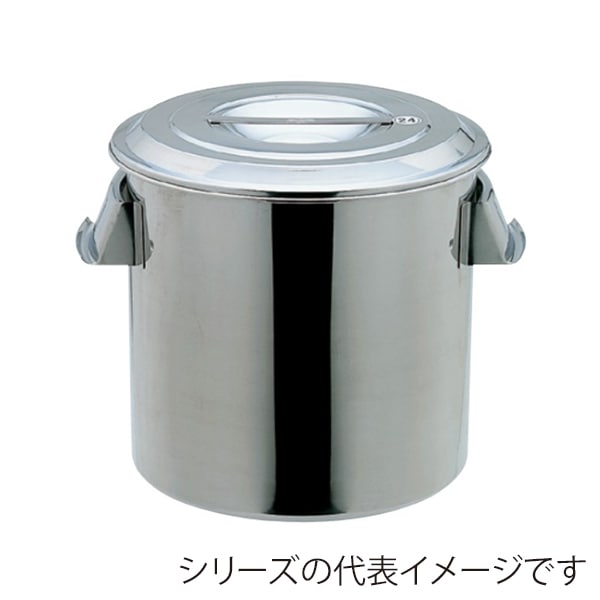 ●パッキン付の密閉式で内容物の飛散を防止し、ホコリなどの混入を防ぎます。●ツル(吊り下げ用の取手)の付いた丸型ステンレス容器です。●中身を空ける際に下部の取手を掴むことで容器を楽に傾けられます。●取手が折りたたみ式なので置いた時に幅を取りません。●底の角は、汚れが溜まりにくいR構造です。●内外面バフ研磨仕上げです。●容量(L):10●直径(mm):254●高さ(mm):247●内径(mm):240●深さ(mm):240●蓋タイプ:密閉蓋(クリップ式)●取手:吊り手●蛇口有無:無●バルブ有無:無●外形寸法(mm)幅:300●容器本体…SUS304●蓋【MF】…SUS304●ツル・取っ手…SUS304●キャッチクリップ…SUS304●表面処理:内外面バフ研磨●使用条件:大気圧(加減圧不可)●フタ付●パッキン付●ステンレス(SUS304)●パッキン:シリコンゴム(食品衛生法適合)●ツル・取っ手…SUS304、蓋【MF】…SUS304●キャッチクリップ…SUS304