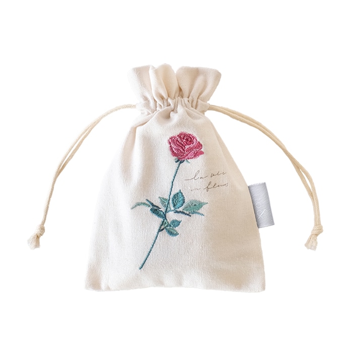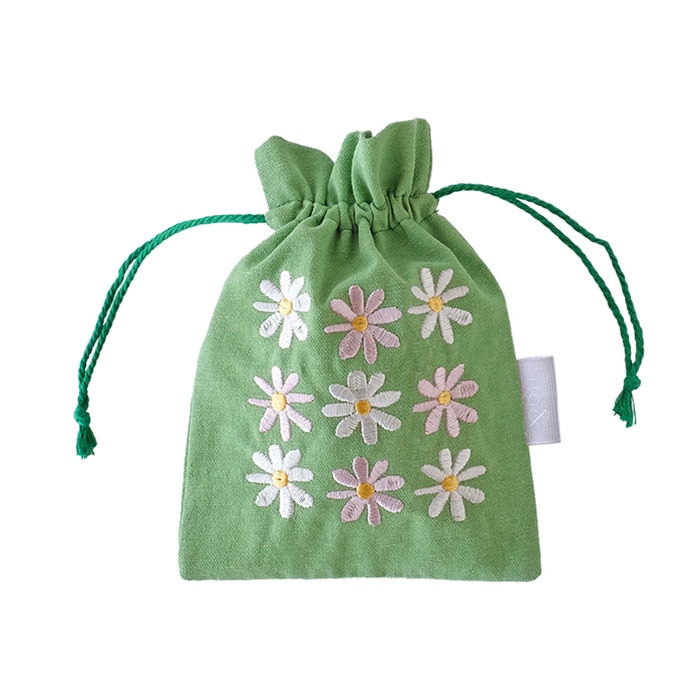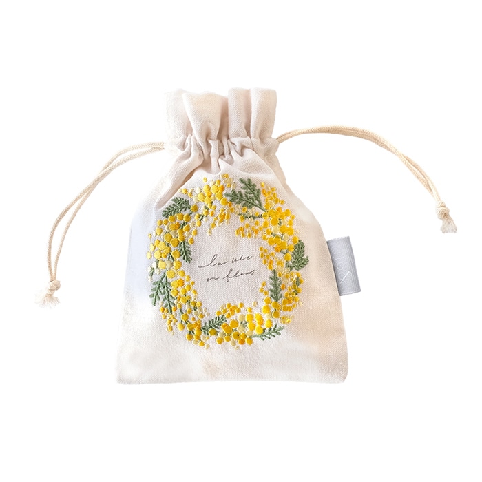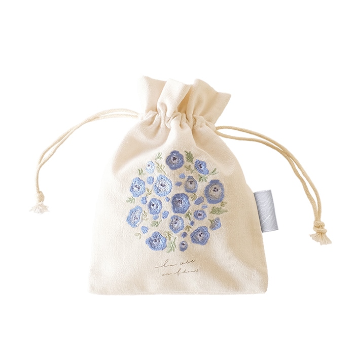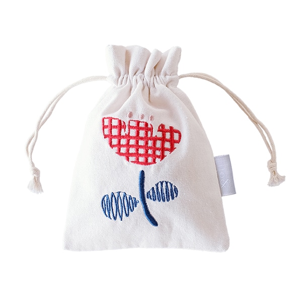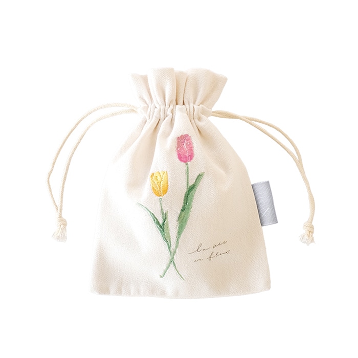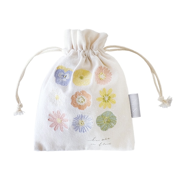 植物をモチーフにして、繊細なタッチで描かれたデザインの巾着袋です。