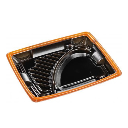 四季折々のメニュー作りをお手伝いします。当社独自製法で光沢があります。ライトキャップでしっかり輝き、アイキャッチ効果が上がります。中心に向けて緩やかなスロープ形状になっております。具材が入りすぎることもなく、入らなすぎることもないバランスの良い弁当容器です。独特なウェーブ形状で四辺、四隅のデッドスペースを目立たなくさせ、ボリューム感をアップします。●電子レンジ使用可●耐熱温度:130℃●耐油性:あり●入数:50枚